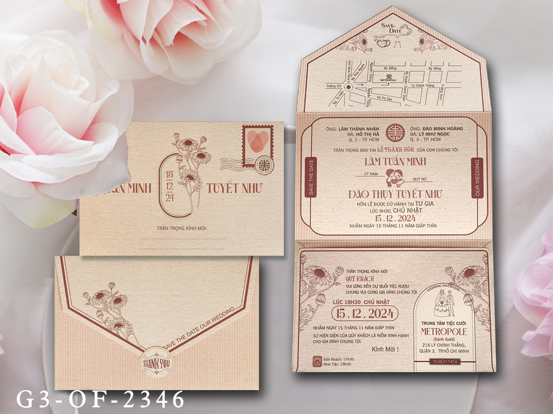 • Phôi thiệp cưới Gập 3 trong 1